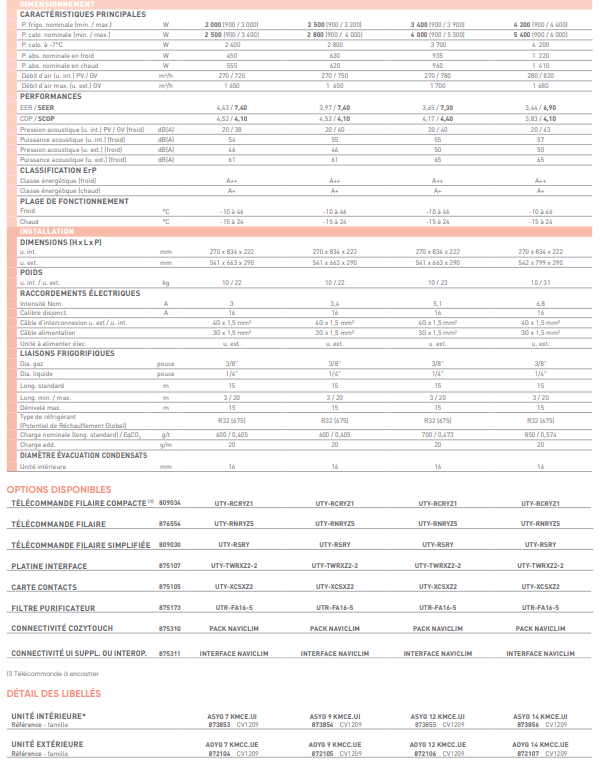 🔹 Économies d’énergie : programmation hebdomadaire (en option), classé A++ en froid et A+ en chaud